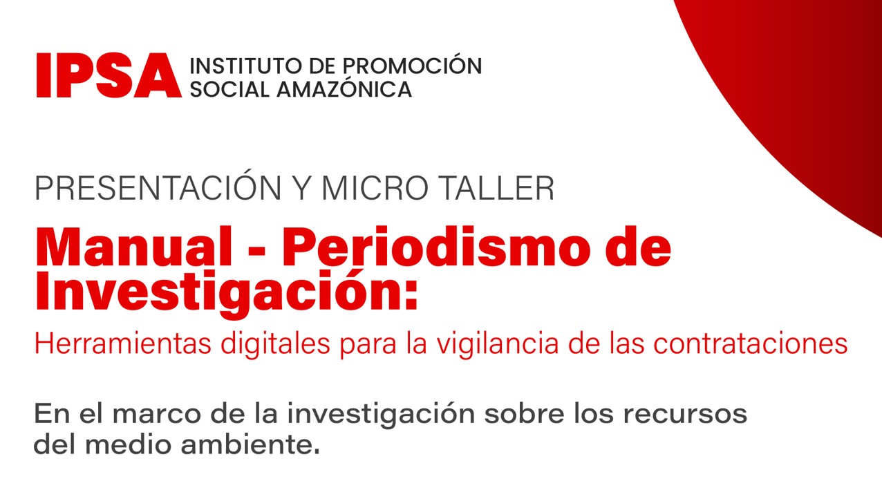 Presentación y Micro Taller: Manual – Periodismo de Investigación: herramientas digitales para la vigilancia de las contrataciones